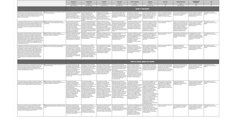 LO3: Evaluate final outcomes, explaining and defending work through presentation and critical commentary.