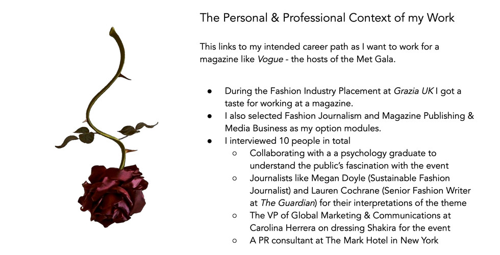 The main focus of the presentation is to showcase the body of work completed for Assignment 2 alongside other elements from Assignment 1, which will be shown at the graduate exhibition, so this is good practice for speaking to guests there too.